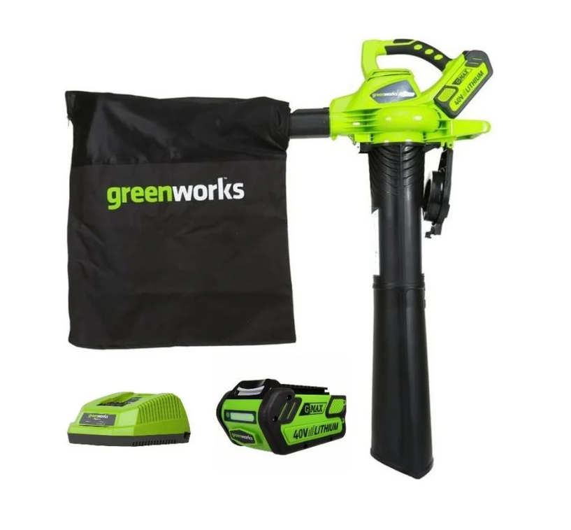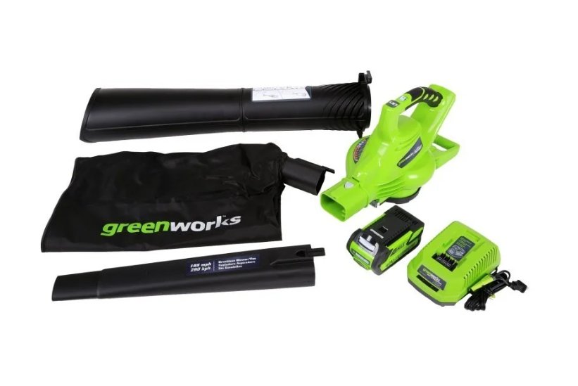 Аккумуляторный бесщеточный воздуходув/садовый пылесос GreenWorks GD40BV 24227UB представляет собой устройство 2-в-1. Предназначен для уборки территории от листьев, пыли, садового мусора. Укомплектован аккумулятором, который совместимим с 15-ю устройствами из линейки G-MAX 40V, и зарядным устройством. Оснащен стальными ножами для измельчения листьев. Устройство отличается высоким крутящим моментом, что обеспечивает скорость воздушного потока 280 км/ч.